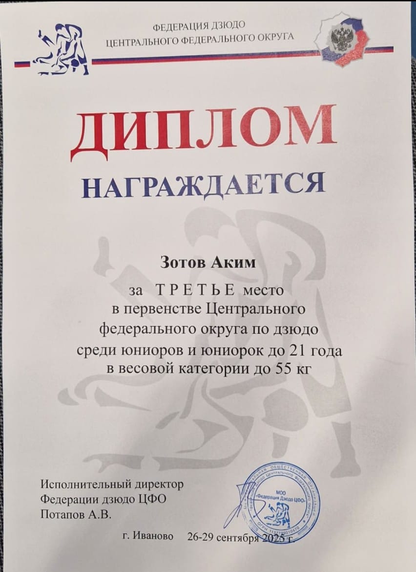 С 27 сентября 2025 года в городе Иваново проходит Первенство Центрального федерального округа по дзюдо среди юниоров и юниорок до 21 года.